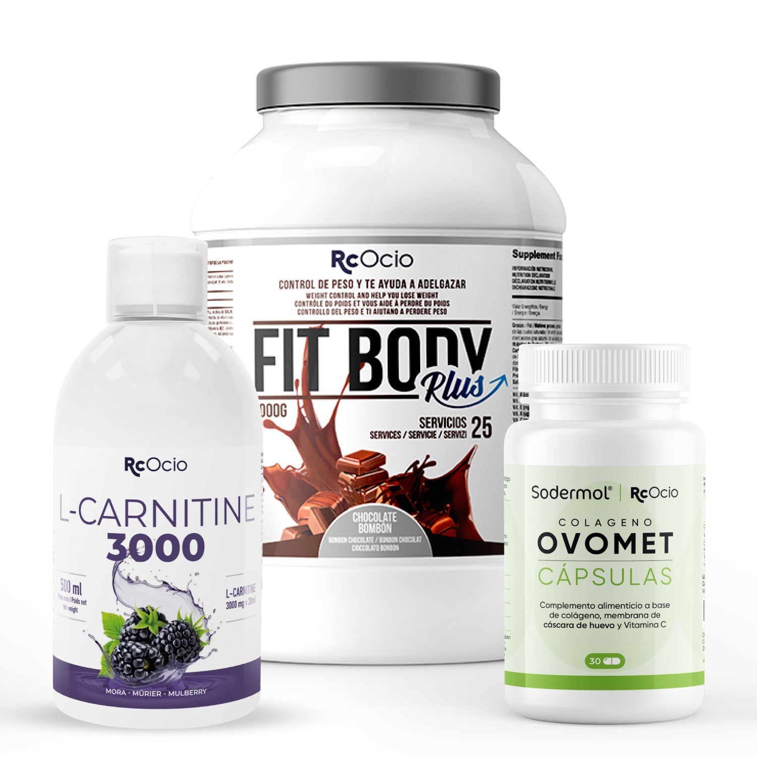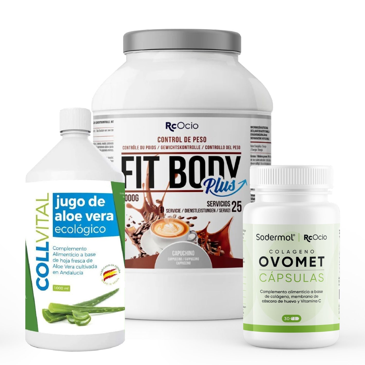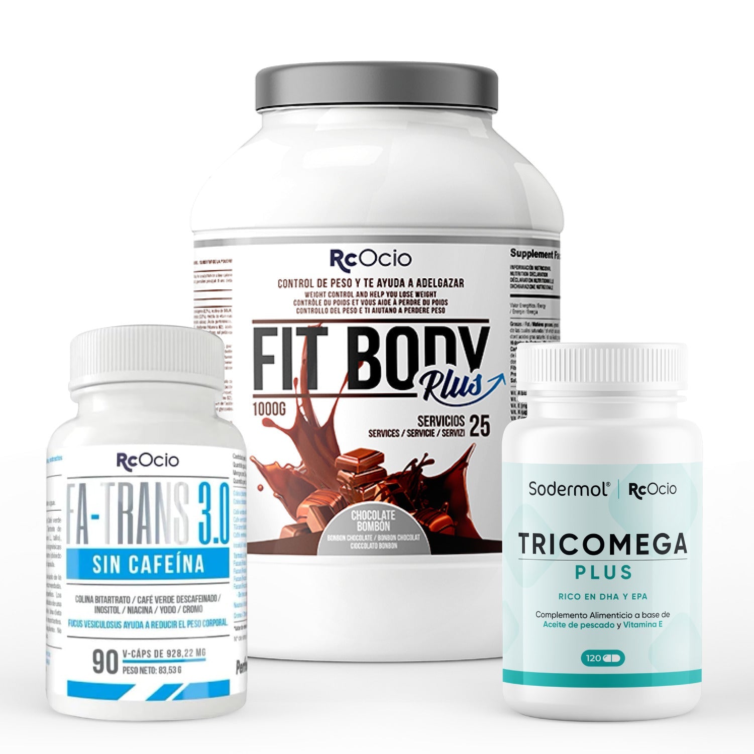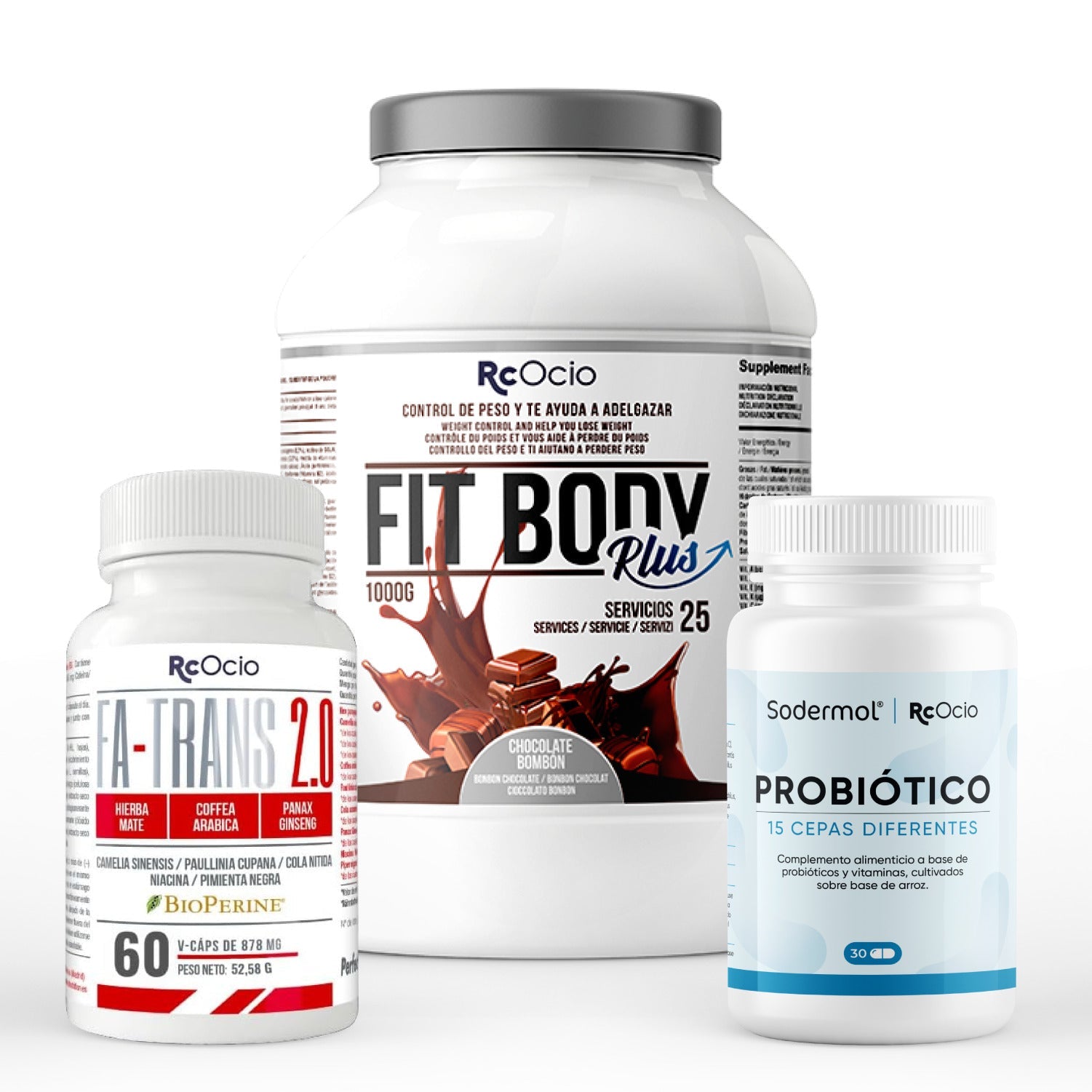 Obtén el máximo beneficio con el batido sustitutivo FitBody, el termogénico para estimular tu metabolismo y el gel reductor para combatir la celulitis, reafirmar la piel y reducir grasa