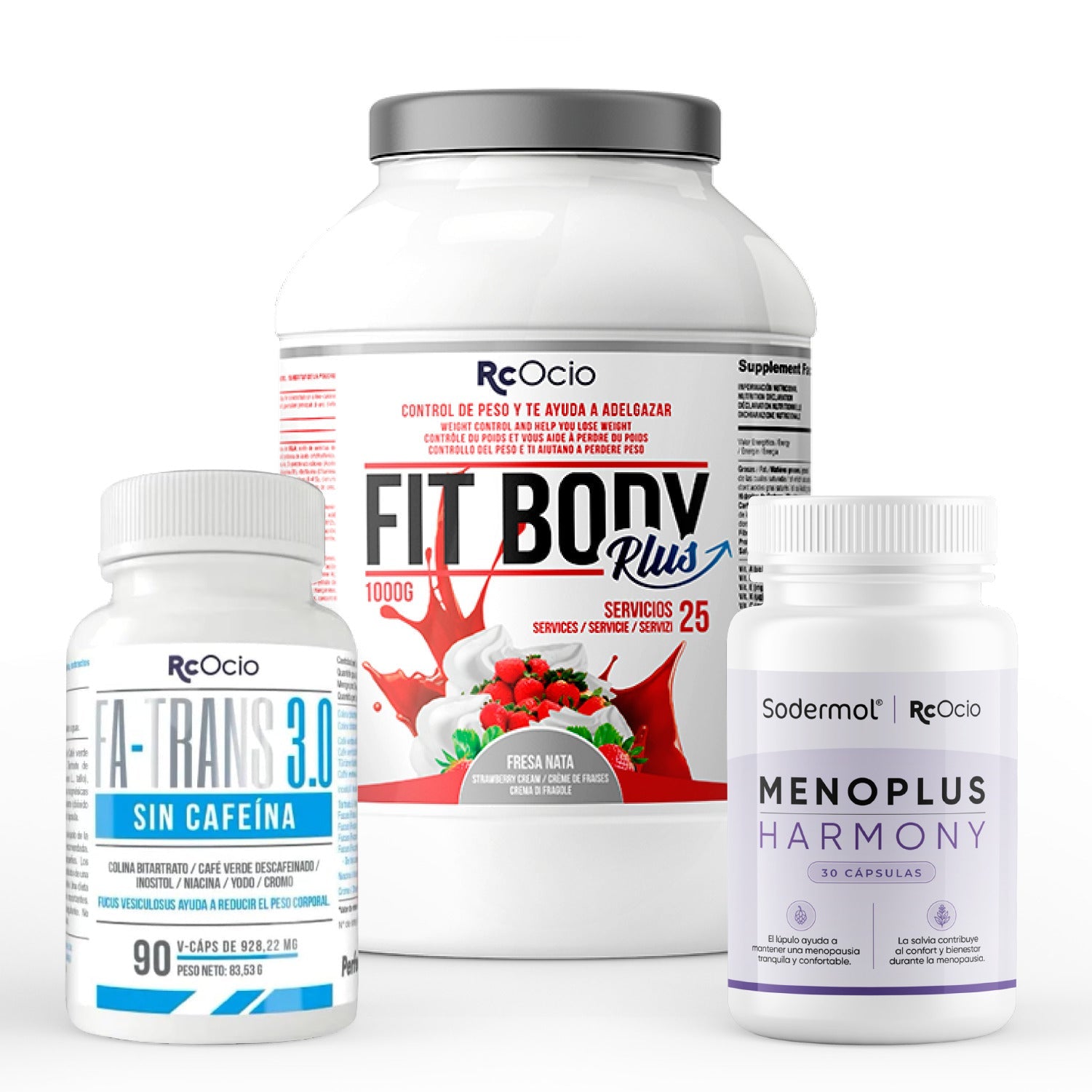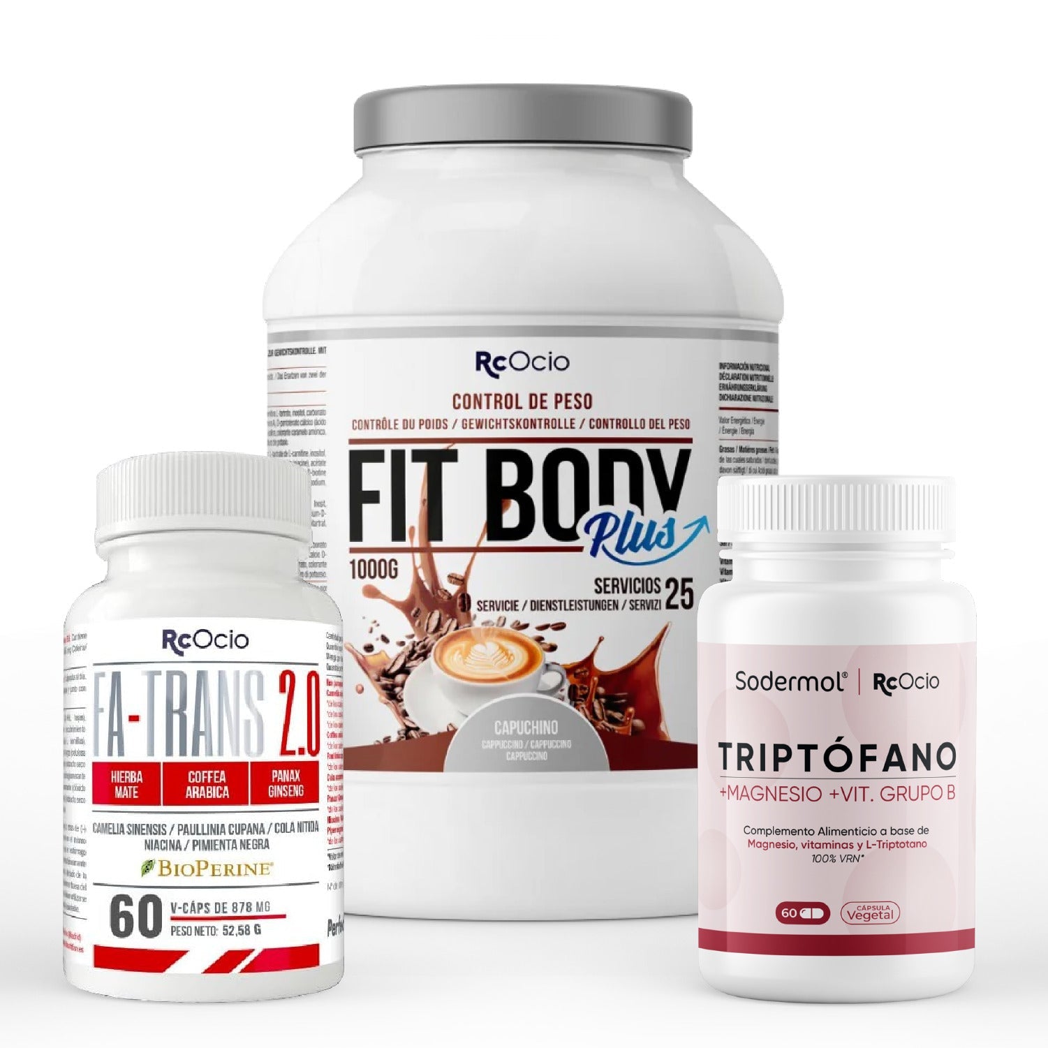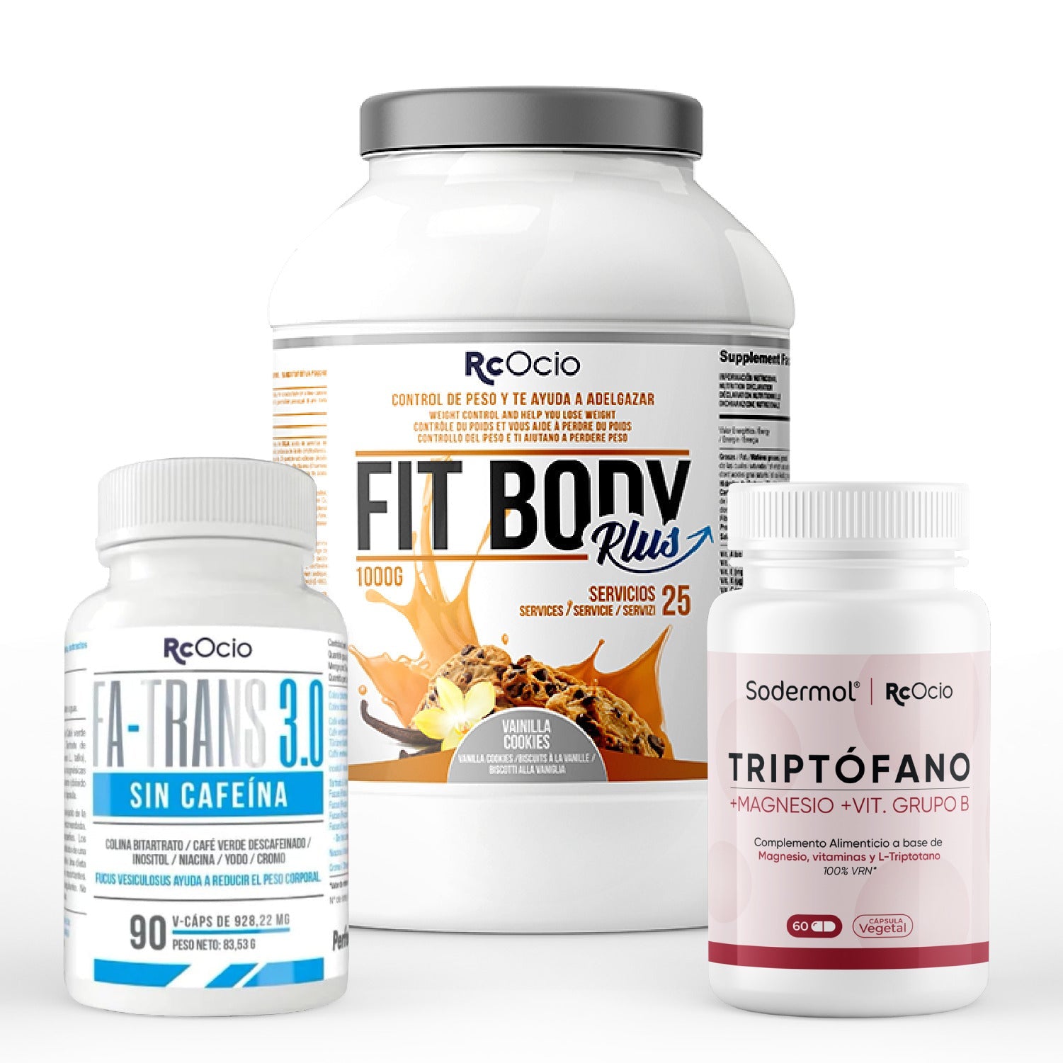 Obtén el máximo beneficio con el batido sustitutivo FitBody, el termogénico para estimular tu metabolismo y el gel reductor para combatir la celulitis, reafirmar la piel y reducir grasa