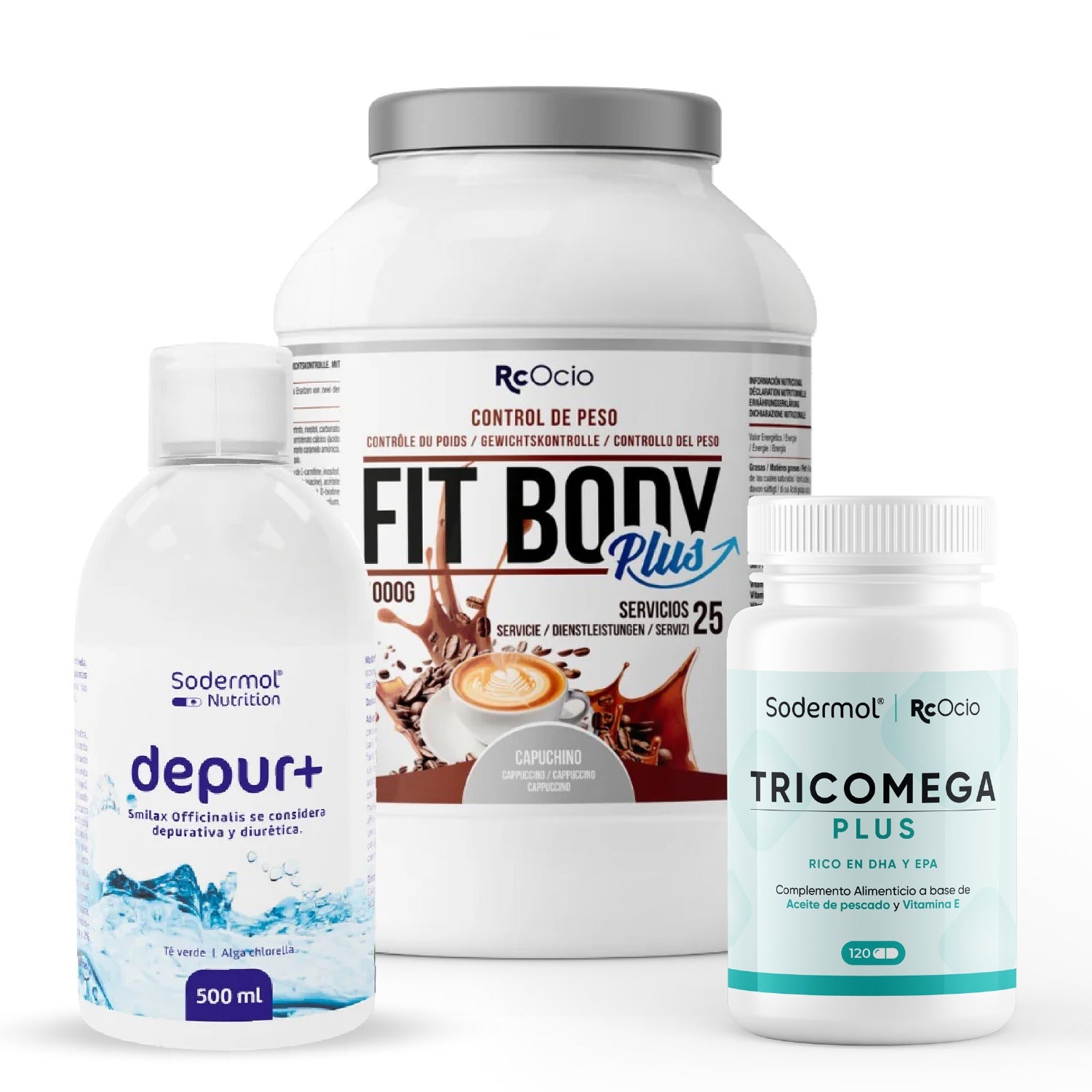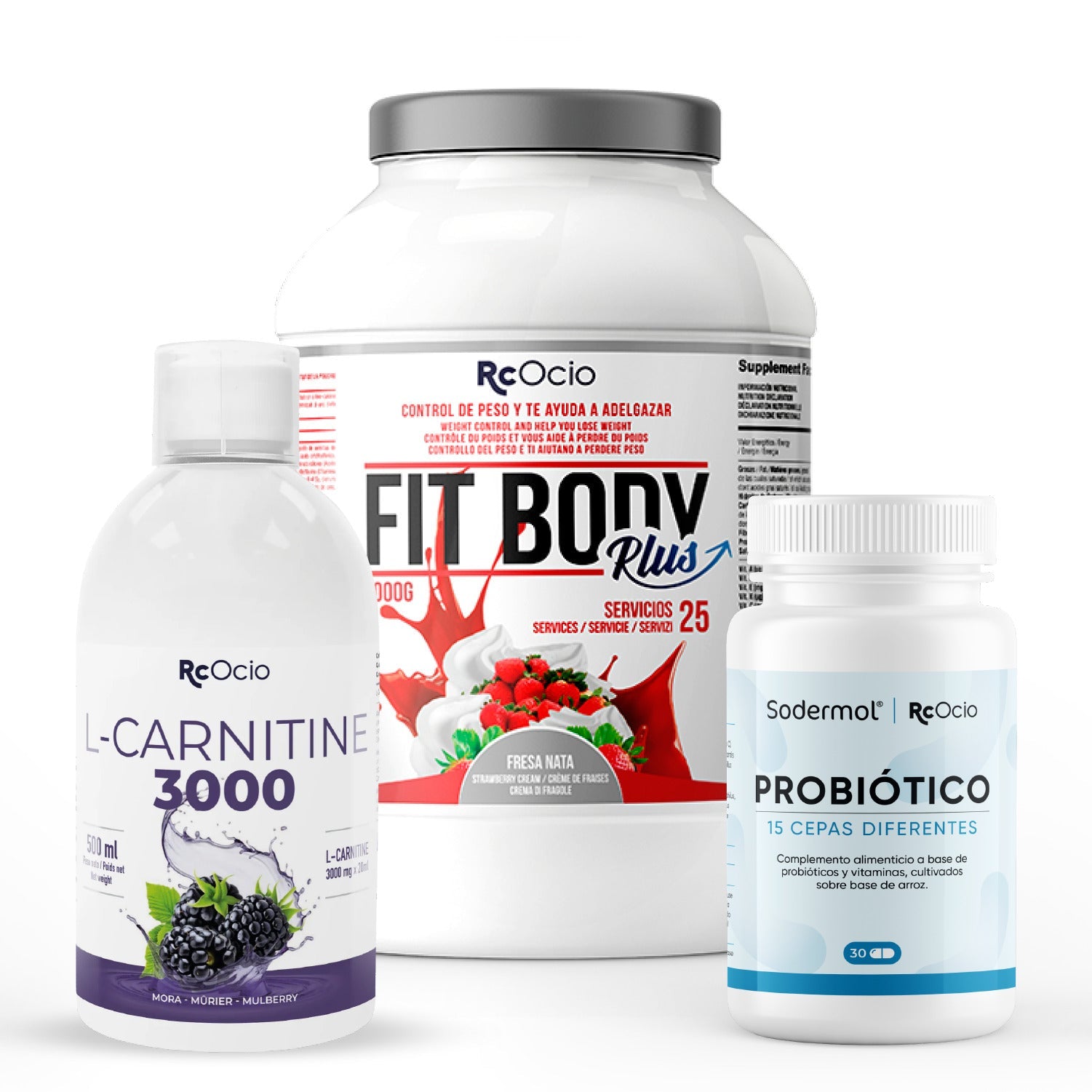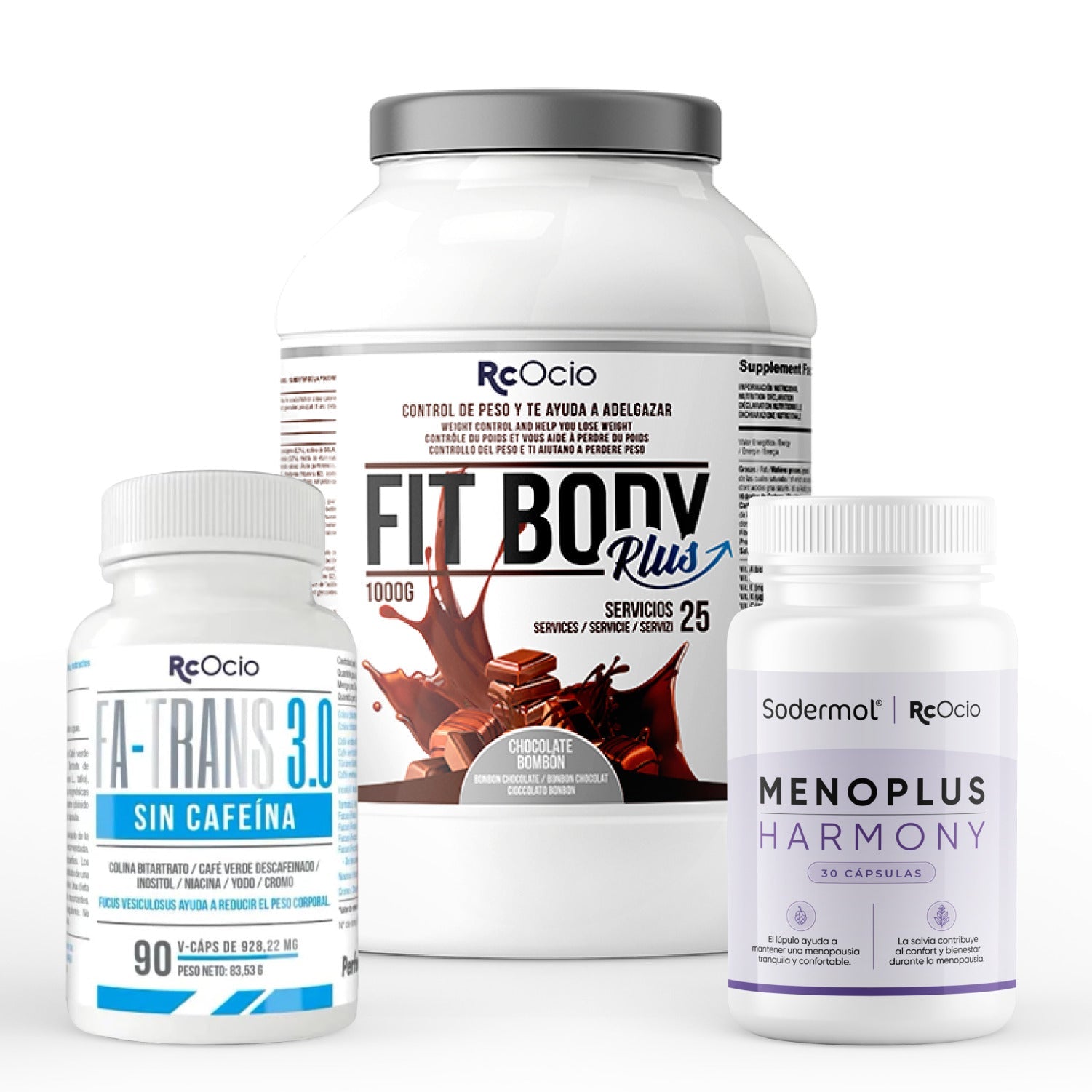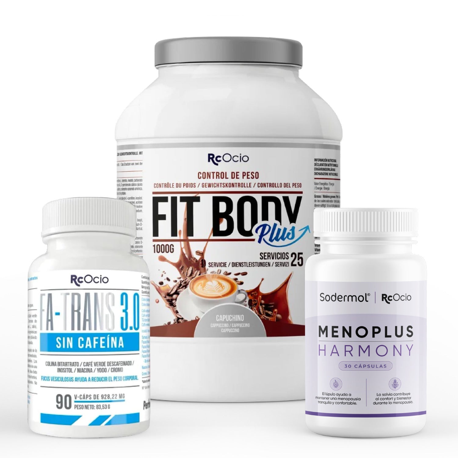 Obtén el máximo beneficio con el batido sustitutivo FitBody, el termogénico para estimular tu metabolismo y el gel reductor para combatir la celulitis, reafirmar la piel y reducir grasa
