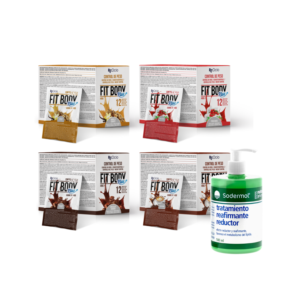 Obtén el máximo beneficio con el batido sustitutivo FitBody, el termogénico para estimular tu metabolismo y el gel reductor para combatir la celulitis, reafirmar la piel y reducir grasa